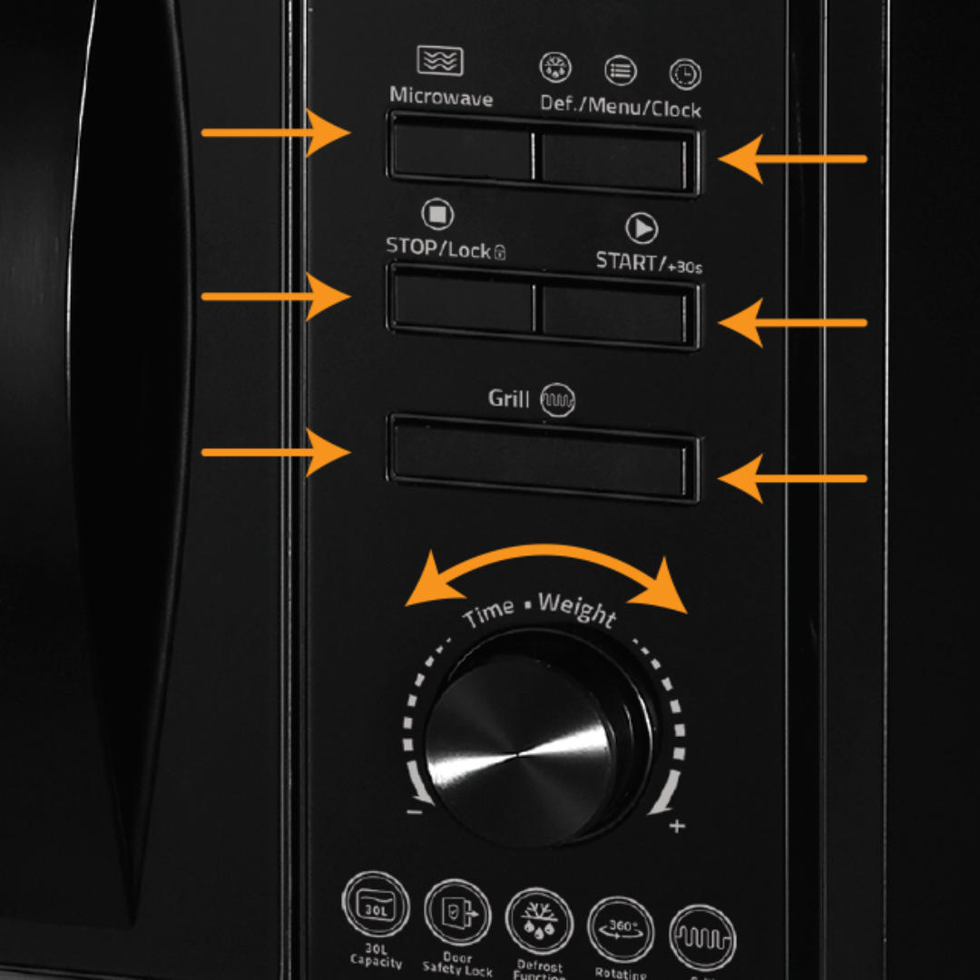 مايكرويف كهربائي MWO-268-02 بسعة 30 لتر، يدعم التسخين والشواء والطهي المتعدد، مزود بصينية دوّارة وقفل أمان للأطفال، ومناسب للاستخدام اليومي في المطبخ المنزلي.